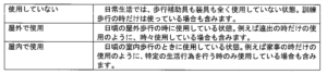 歩行補助具・装具の使用は以下に該当するものを選択します。屋内・屋外両方で使用している場合は