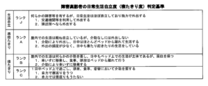 障害高齢者の日常生活自立度(寝たきり度)については下記の判定基準に合致するものを選びます。