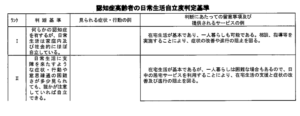 認知症高齢者の日常生活自立度については下記基準を用いて判定します。遷延性の意識障害などで